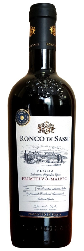 Вино "Ронко Ди Сасси Примитиво-Мальбек Апулия ИГТ" полусухое красное 0,75 л